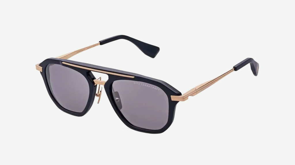Dita-TERRACRAFT-DTS416-A01-52-19-138-Noir mat-Matte black-Or blanc-White gold-Lentilles grises-mauves-Grey/purpleish lenses-Aviateur-Aviator